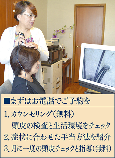 抜け毛に悩む女性は意外と多い。「夏の紫外線や汗で頭皮が弱り、秋は1年で一番抜け毛が増える季節。白髪染めやパーマが頭皮の負担になっていることも」と話すのは、女性専門の育毛サロンを開く(株)レホルムジャパンの西村昭美代表。
