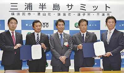 横須賀・鎌倉・逗子・三浦の4市と葉山町の1町が連携して行政課題に取り組む「三浦半島サミット」が2日、横須賀市役所で開かれ、各首長が意見交換しながら進捗状況を確認した。