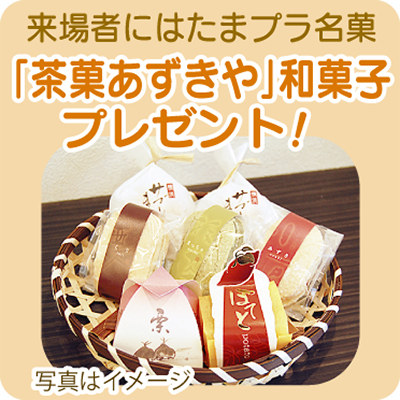来場者にはたまプラ名菓「茶菓あずきや」の和菓子をプレゼント。定員になり次第終了。申込はお早めに。