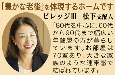 ビレッジIIIの入居一時金は75歳で5430万円〜、85歳は4008万円〜(ともに46〜48平方メートルの居室)。月額利用料(管理費・食費含)は27万4050円〜。