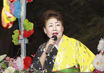 しらとり台在住・演歌歌手の白鳥ひろ子さん(本名・佐藤浩子)。8月3日・4日、しらとり台第二公園で行われたふるさと夏祭りで、自身の持ち歌などを熱唱し、会場を盛り上げた。