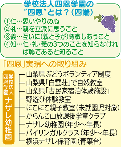 「自然こそが子どもたちに豊かな創造力と好奇心を与えてくれる」―。区内鴨志田町の『学校法人四恩学園 ナザレ幼稚園』は、「もう一つの教育拠点」として山梨県で様々な自然教育を実践している。そんな同幼稚園の山梨県での取り組みを連載。今月は親子のお泊り古民家「滝の沢宿泊保育研究所」の見所を紹介する。