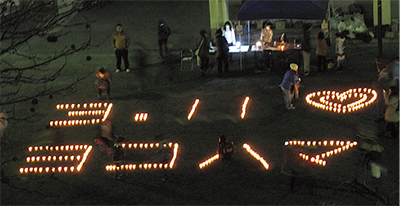 東日本大震災から丸3年を迎える中、被災地の復興へ思いを込めたキャンドルナイトが区内各地で行われ、大勢の人が参加した。