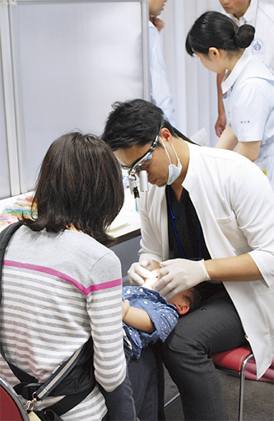 当日は同会所属の歯科医師が口腔内の状態やむし歯の有無などを確認。歯周病や乳幼児期の歯のことなどについて参加者へアドバイスを行っていた。そのほか、歯科衛生士学校の生徒らが歯みがき相談を実施。奥歯や前歯の裏側など磨きにくい場所のブラッシングの方法を丁寧に教えていた。