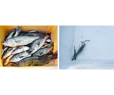 今回のかいぼりでは、ブラックバス92匹とブルーギル約350匹、そのほかコイや金魚などの本来池に生息していなかった生物が捕獲された(数値は23日時点速報値)。在来生物は、テナガエビとトウヨシノボリが数匹ずつと多数のタニシが見つかっている。同事務所の担当者は「池の状況は想定していた以上に悪かった。できれば全て捕り切りたいが、難しい」と話す。