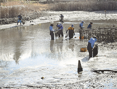 今回捕獲した生物は、事務所玄関での展示などで公開する。外来生物は処分され、水位が戻る3月中旬以降に在来生物のみ池に戻す。ため池は2月末までは、水を抜いた状態を保ち生物の捕獲作業を続け、3月下旬に元の状態に戻る予定だという。