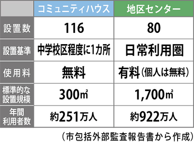 地区センターなどの施設整備を管轄する市民局地域施設課の担当者は「コミハの有料化は過去にも検討してきた。地区センターとコミハは、本来の設置目的が違うが、もう一度精査していく」と話している。