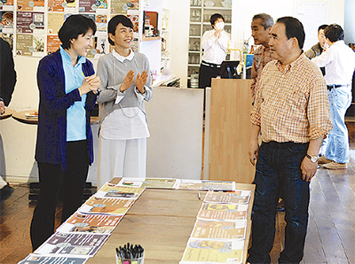4月9日には、アプリを介さない入札イベント「サイレントオークション」の3回目を3丁目カフェで実施=写真。店内に27件の出品内容が掲示され、希望者が入札した。