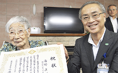同施設管理者の武藤恵江さんは「海野さんは万寿の森の宝。おおらかで皆に好かれている。これからも長生きしてもらえたら」と話す。