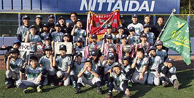 青葉区少年野球連盟(菊池侃二会長)主催の第46回大会Aクラス決勝が11月5日に日本体育大学の野球場で行われ、グリーンビクトリーズ=写真=が優勝した。