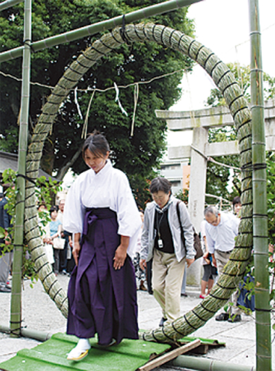 古来からの伝統神事「夏越の大祓式」が先月30日、長津田王子神社で行われ、約350人の参拝者は約2メートルになる茅の輪を八の字にくぐり平穏な一年を過ごせるよう願った。