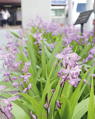 緑区の花に制定されている「紫蘭」(シラン)が現在、緑区役所前に咲いている=写真5月12日撮影。