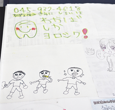 鴨居にある『わかば歯科医院』は子どもの目線を大切にした歯科治療を実践している。同院の杉山院長は「大人なら我慢できる治療も、子どもにとってはとても大変なこと。リラックスして治療が受けられる環境を大切にしている」と話す。アニメを見ながら治療が受けられるテレビモニターなどの設備も整うが、「やはり医師やスタッフとの楽しいコミュニケーションが重要」と院長。待ち時間には楽しいおしゃべりやお絵かきが定番になっているという。「せんせいとむしばやっつけるよ」。壁に貼られた絵の一枚一枚に治療と向き合う子どもたちの思いがあった。