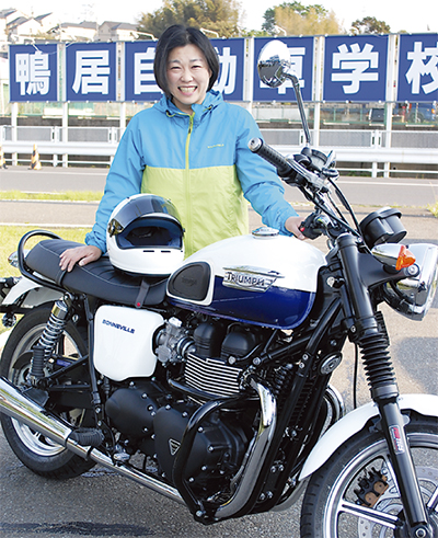 めでたく免許を取得したのを機に、ずっと憧れだった大型バイクを購入した。「ずっと乗りたいと思っていました。お洒落なところが気に入っています」