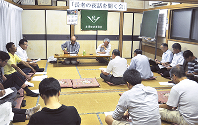 長津田の辻自治会(岡部豊会長)が4日、秋の夜長の新企画「長老の夜話を聞く会」を開いた。