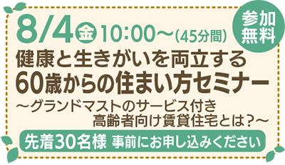8月4日  健康と生きがいを両立する「住まい方セミナー」開催
