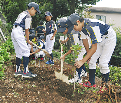 野球の練習前に植栽に参加したという石垣信慈くん(中山ヤンガース)は「アジサイを植える前に根の部分をほぐす作業がとても面白かった。このアジサイが来年、きれいな花を見せてくれたら嬉しい」と話した。