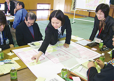 地域意識が薄れているという課題に対して「コンビニでは会話をしなくても買い物ができる」「だから、あまり他人と話す必要がなくなってきた」「大人があいさつの見本を見せるべきではないか」「顔見知りなら悪いことはできない。防犯にも繋がる」など、意見を寄せ合った。グループで話し合った内容は、最終的に全体で発表された。