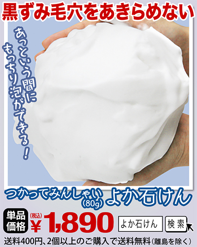 このよか石けん「一度使ってみたらもう手放せない」「肌の透明感がぐんと上がった」「あきらめていた毛穴の黒ずみが減った」と、ヘビーユーザーが多いのが特徴。数ある類似商品のなかで、長年人気を得ている秘密は、「無添加であること」「洗いあがりのツヤ感」「手に吸い付くような泡」。