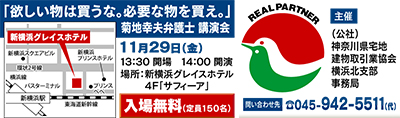 そんな人へ、アドバイスとなる「消費税アップ目前 消費者セミナー」を県宅建協会横浜北支部が29日(金)に開催。入場無料、予約不要。