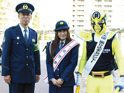 同キャンペーンでは「大日本プロレス池辺町防犯隊」に所属する女子プロレスラー春日萌花さんを一日警察署長に委嘱し、防犯チラシやグッズを配布するなど防犯を呼びかけた。また、すきっぷ広場では特設リングを設置し、プロレスラーによる試合や振り込め詐欺防止を呼びかける寸劇が行われ、会場は盛り上がりを見せた。