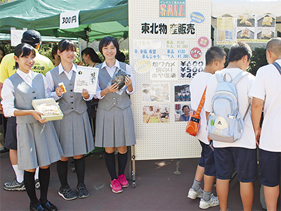 これは茅ケ崎中PTAと同祭実行委員会が主催して開かれたもので、教職員、生徒、保護者、地域住民らが手作りで立ち上げたイベント。同校教諭が東日本大震災のボランティアとして岩手県の大槌中学校を訪れたのがきっかけで交流が始まった。以来、毎年このイベントによる収益金を使い、1年目に可動式のバレーボールポール、2年目にプリンター3台を寄贈。今年はレーザープリンターを送る予定となっている。