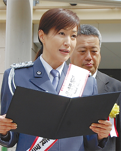 当日は県警職員や黒岩祐治神奈川県知事などが出席。また女優の高島礼子さんが薬物乱用防止対策官に任命され、委嘱式が行われた。高島さんは「違法薬物は1度でも使うとやめられないもの。勇気を持って立ち向かいましょう」などと撲滅宣言し、注意を呼びかけた。