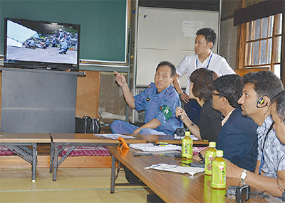 訪れたのはフィリピン、ネパール、タイなどから約30人。同町内会は独自に消防ポンプ車を所持しているほか、大規模な消防訓練や新聞販売店との連携など、防災への取り組みがひときわ高い地区として知られている。同会議は市内の防災拠点などを視察するが、自治会の紹介は初となった。