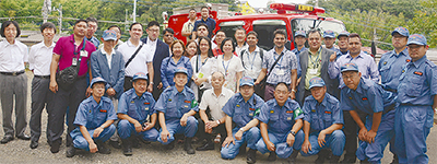 当日は東山田公民館で約50人が参加。八木会長から消防ポンプ車を導入するまでの経緯などが解説された。車両も屋外に展示され、設備や車内に搭載されている装備を興味深そうに眺める姿が見られた。また訓練の様子が上映されるなど、各国へ防災意識の高さを発信する場となった。八木会長は「通訳も交えて諸外国の人と対話するのは大変だったが、私たちの取り組みに興味を持ってもらえたようだった。文化の違いはあるが各国に持ち帰ってもらって、防災の意識を高めてほしい」と話した。