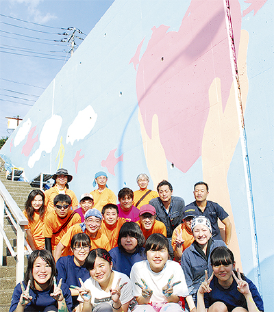 色塗りを行った川和中美術部の竹内弓乃さん(2年)は「こんなに大きな絵を描くのは初めて。通学路に自分たちの描いた絵があるのは嬉しい」と笑顔を見せた。実行委員会の清水会長は「学校や地域、多くの人の協力に大変感謝している。学区内には落書きがまだ残っている。今後も活動を続けて町の美化を進めていきたい、皆で作った壁画を見てもらえたら嬉しい」と話している。