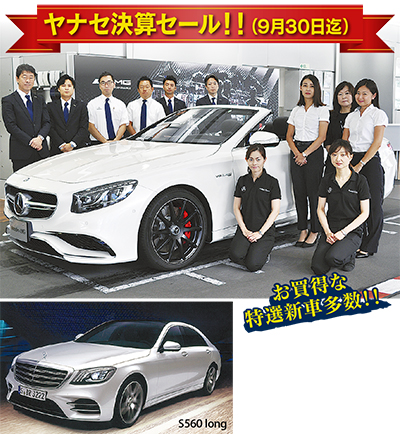 メルセデス・ベンツを購入する最大のチャンス到来。「ヤナセ決算セール」が開催されている(9月末まで)。決算ならではのお買い得な特選車が多数並ぶ、ぜひ気になる車をチェックしてほしい。さらに、特別低金利1・9%も用意され新車がさらにお求めやすくなっている。また、先月発表された新型Sクラスも登場、こちらにはスマートフォンで車を操作し、駐車や車庫入れなどを自動で行ってくれる「メルセデスミーコネクト」が装備されている。他にもワンランク上の安全技術をリーズナブルに購入できる「ダイナミックセーフティキャンペーン」も実施中。さまざまな購入支援が満載の今、ヤナセにぜひ立ち寄ってみては。