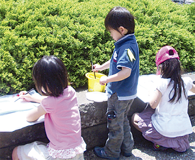 画用紙は受付で配布される。参加者は絵の具、クレヨン、画板など写生に必要なものを各自用意する。長時間になるため、昼食や帽子なども準備を。描き終えたら参加記念品を受け取り解散になる。