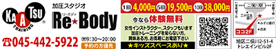 自分の体力を向上させたい、健康を維持したい、いつまでも若々しい肌を保ちたいなど、身体の悩みは人それぞれ。その悩みに応えてくれるのが、二俣川駅南口歩いてすぐの「加圧スタジオ Re★Body(リ・ボディ)」だ。