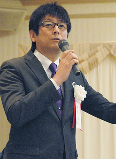 横浜商工会議所西部支部が12月6日、支部委員会・忘年懇親会を西区のホテルキャメロットジャパンで開催。横浜DeNAベイスターズ元選手で営業部の北川利之さん(32)と、ラジオ・FMヨコハマのDJ、栗原治久さんがゲストに招かれ、「横浜DeNAベイスターズの地域への取組」をテーマに対談した。