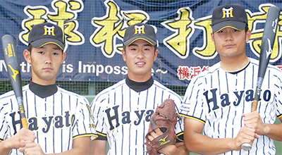 強豪校ながら、県内出身の「地元の選手」でチーム編成を行う両校。同じ地域ということもあり、元同級生や元チームメイトといった選手も多いという。商大の続木悠登君(3年)と、隼人の柏原翔君(3年)の両投手は中和田中学校=泉区=の同級生。続木君は「(同級生ということは)意識しないで勝ちたい。周囲が盛り上げてくれているので、いい試合にしたい」と話す。一方で柏原君は「意識します。知っているだけに負けたくない」と闘志を燃やす。