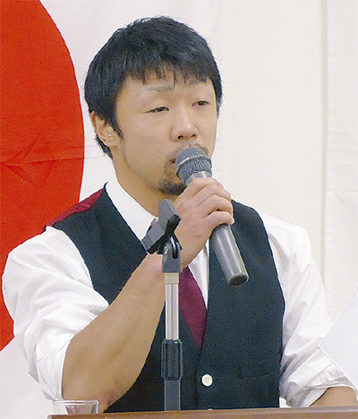 旭区在住のプロボクサー・八重樫東(あきら)さんが9月30日、横浜旭ロータリークラブ(新川尚会長)の例会を訪れ、卓話を披露した。
