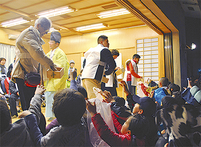 当日は毎年多くの来場者でにぎわい、炒った大豆が厄男厄女の手でまかれる。数え年の年齢の数だけ豆を食べるのが慣わしだ。