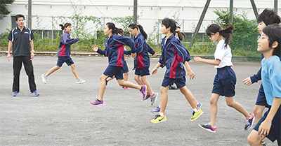 講演後は陸上部の生徒を対象に校庭で実技指導が行われた。オリンピアン直伝のアドバイスに、生徒らは真剣に耳を傾け、体を動かしていた。
