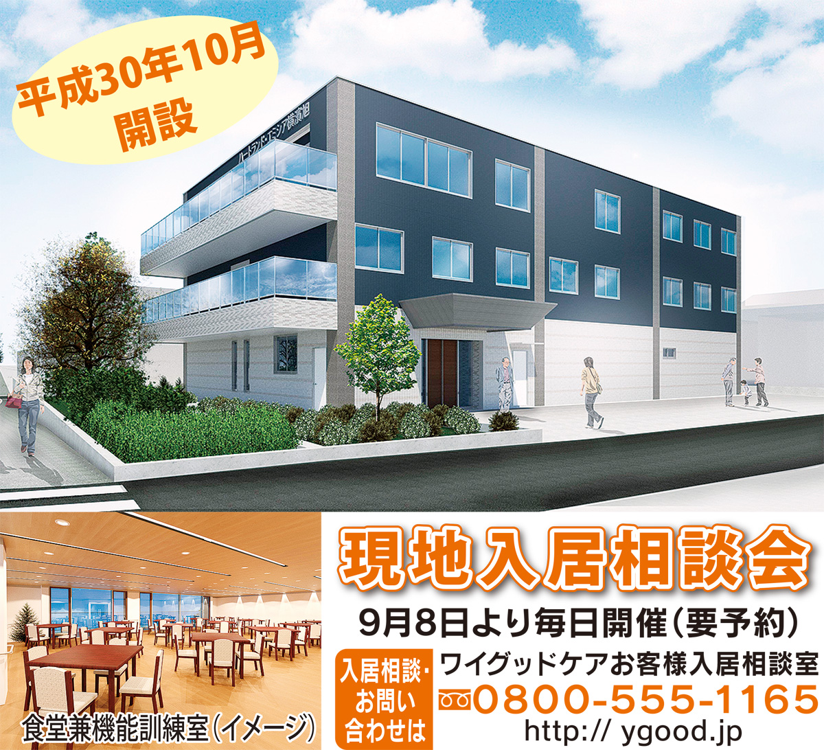 (株)ワイグッドケアの11番目のホームとして、より質の高いサービスを目指した、新ブランド「ハートランド・エミシア」が横浜市旭区都岡町に今年10月オープンする。