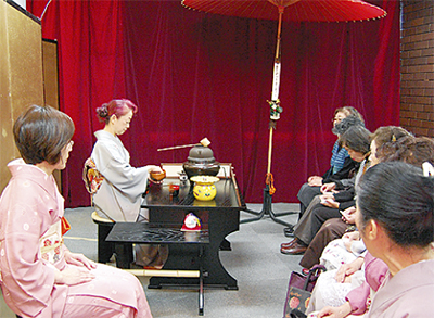 大茶会では、茶席が2日間で8回行われ、茶の味を楽しもうと来場者が列を作っていた。会場内ではほかに、華道と茶道の体験会も行われた。