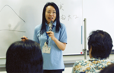 瀬谷区の管理栄養士・小西智子さんと横浜市体育協会の指導員・根崎和子さんが、それぞれカロリーコントロール、シェイプアップ体操などについてレクチャーした。