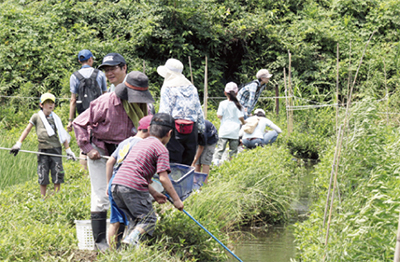 会場となった上瀬谷通信基地内の「ふゆ水田んぼ」で、子どもたちは目を輝かせて生物観察を楽しんだ。指導に当たった瀬谷環境ネットでは「基地の返還後もこの貴重な自然を残してもらいたい」と話していた。