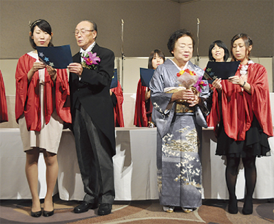 長年にわたる日中間の教育交流に尽力したとして、このほど「2013年度外務大臣表彰」を受賞した籾山宣さんの功績を称えようと10月26日、横浜市内のホテルで祝賀会が催された。