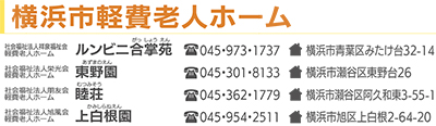 横浜市の補助金で運営している「軽費老人ホーム」は、60歳以上の人で、家庭環境や住宅事情等で家族との同居が困難な人や一人暮らしで不安な方が、低額な料金で利用できる施設。自分のことは自分で行える人が原則対象の施設だが、身体機能の低下等により、自立した日常生活を営むことに不安のある人も入居可能になっている。
