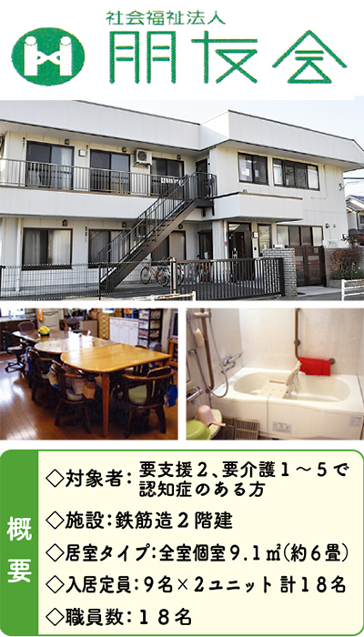 利用者一人ひとりの「安心」「生きがい」「満足」ある活き活きとした生活の実現を目指し、福祉サービスを提供する瀬谷区阿久和東の「社会福祉法人朋友会」。同会が運営する認知症対応型住居「グループホーム朋友」では現在、入居者を募集している。