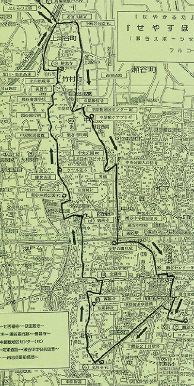 今回考案されたコースはフル14Km、フルを分けた北回りのコース11Km、南回りのコース6Kmの3種類。スポーツセンターで受け付けた後、各チェックポイントを回る仕組みだ。瀬谷歴史かるたの札の中から「せ・や・す・ほ・つ・せ・ん・た」(=瀬谷スポーツセンター)の文字を巡り、その場所に記されたクイズを解いて再びスポーツセンターをめざす。チェックポイントは宗川寺、西福寺、徳善寺など名木古木がある寺社や、つり鐘が有名な妙光寺など11カ所。