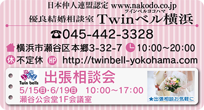 今年で開業5年目を迎えたツインベル横浜は、昨年のお見合い取り扱い件数1300件以上、成婚率は、現在47・6%。入会期間5カ月で成婚した人、お見合いから1カ月半で婚約した人など、嬉しい報告が続々と入っているという。