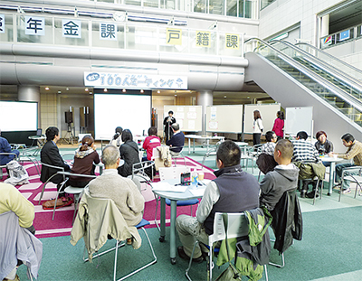 泉区で新しい出会いの場で何かを始めたい、地域の役に立ちたいなど、様々なアイデアをもった人たちをつなげようと泉区役所区民ホールで12月1日と8日、ワールドカフェ「100人ミーティング」が開催された。