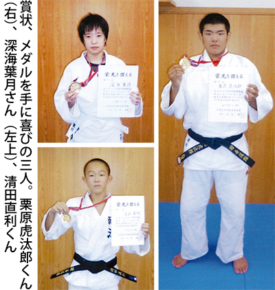 個人62人、団体9チームが参加し、練習の成果を競い合った。岡津中学校から大会に出場した清田直利くん(男子軽量級)、栗原虎汰郎くん(男子重量級)、深海葉月さん(女子個人戦)が優勝するなど、区内選手が好成績を収めた。