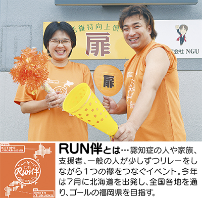 認知症になっても安心して暮らしていける町を目指し、認知症患者や家族、支援者らがリレーをしながら襷をつなぐ企画「RUN伴(とも)」が泉区内でも実施される。中田東の生活維持向上倶楽部「扉」を9月21日(月・祝)の午後2時に出発する。市内を通るルートは今回が初。